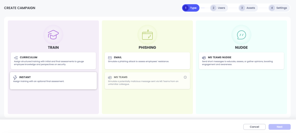 OutThink lets you set up campaigns led by instructors, creating a workshop/classroom-like experience. You can engage your employees with clear content, covering all subjects and security policies.