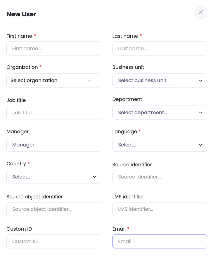 - Language – this field indicates the default language in which the user will receive communication, training and simulation materials. Users can subsequently change their preferred communication language.